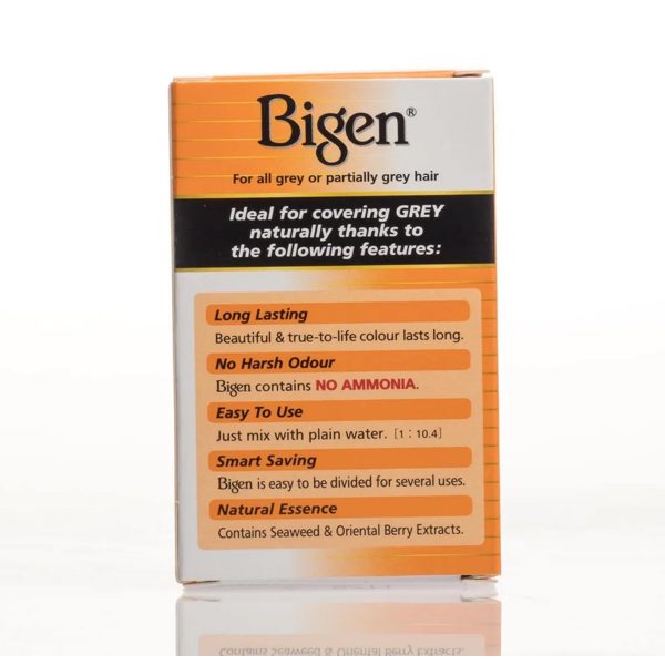 Bigen Powder Permanent Hair ColorĀ is ideal for those looking for long lasting, excellent grey hair coverage or to enhance their natural hair color. A proven formula for over 30 years that guarantees effective results, the unique powder formula is activated by water and deposits rich, natural-looking color into even the most stubborn gray hair.