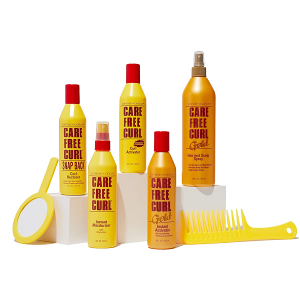 Soft sheen CarSon Care Free Curl Gold Instant Activator is a hair care product designed to enhance natural curls and waves while providing moisture and conditioning to your hair.