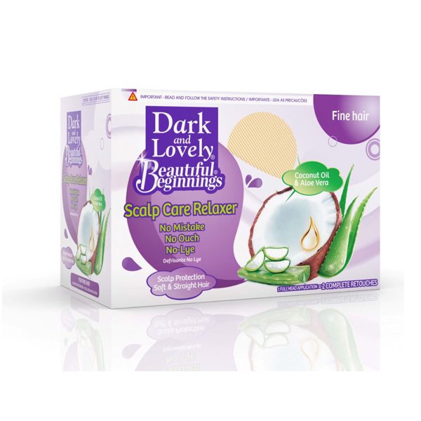 - Our Dark and Lovely Beautiful Beginnings Scalp Care No Lye Relaxer Kit Fine is infused with Coconut Oil and Aloe Vera to nourish your hair during the relaxing process.