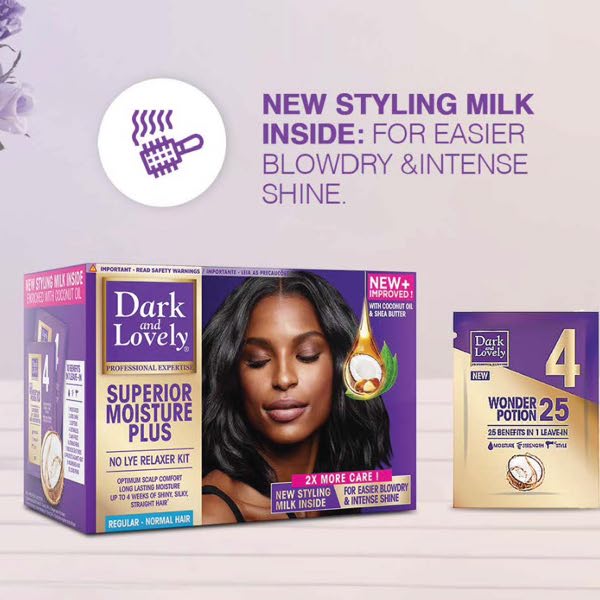 - Dark and Lovely Superior Moisture Plus No Lye Relaxer Kit Regular gently relaxes hair for smooth silky, shiny straight hair.