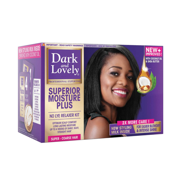 Dark and Lovely Superior Moisture Plus No Lye Relaxer Kit Super gently relaxes hair for smooth silky, shiny straight hair.