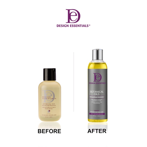 This is a blend that your hair and skin have been craving. Our Design Essentials® Botanical Oils Hair and Body Moisturizer is a synergistic blend of natural oils used to deeply penetrate both hair and skin. It’s infused with a botanical blend of Black Indian Hemp, Ginseng, Horsetail and Rosemary. Together, these botanicals revitalize and moisture hair, resulting in a healthy, natural shine.