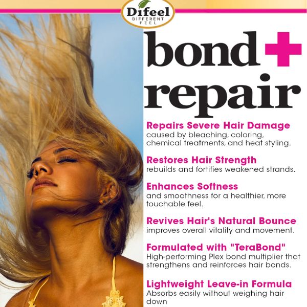 Difeel Bond & Repair Sulfate Free Conditioner is a rich, deep conditioner designed to repair broken bonds while nourishing each hair strand.Formulated with the powerful bond-repair technology “TeraBond,” this conditioner helps restore visible signs of damage, leaving hair with a smooth feel and a lustrous shine.Its creamy texture penetrates deeply into the hair to strengthen and rejuvenate, transforming dry, damaged locks into healthier-looking, vibrant hair.Free from sulfates, this conditioner is perfect for daily use, ensuring your hair stays soft, shiny, and more resilient with every application.