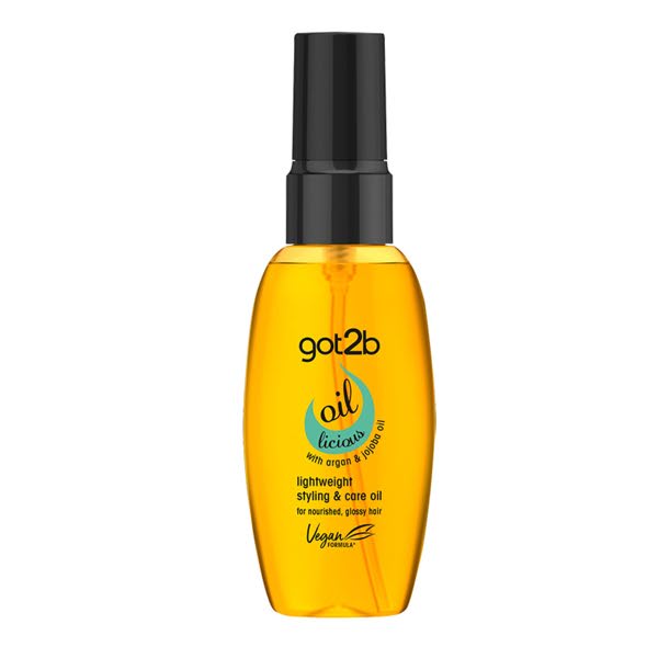 got2b Oil-licious Styling Oil 50ml is an easy to use hair styling oil designed to reduce frizz and leave your hair looking sleek, shiny and feeling well nourished. Vegan and containing argan oil, the non-greasy formula has a beautiful subtle tropical fragrance and a lightweight consistency. It absorbs instantly into your hair and cares for your ends.