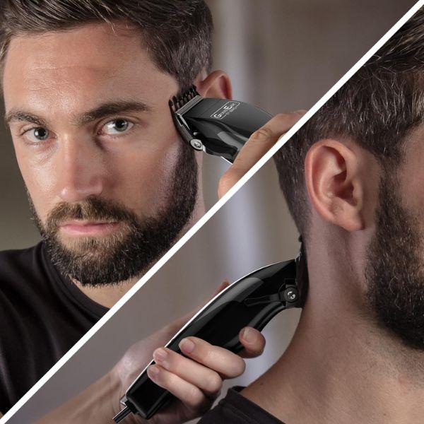 Contains 8 clip on guide combs ranging from 0.8-25mm and a thumb adjustable taper lever 2for more precise cutting lengths, the Sure Cut clipper gives you total control allowing for full haircuts.