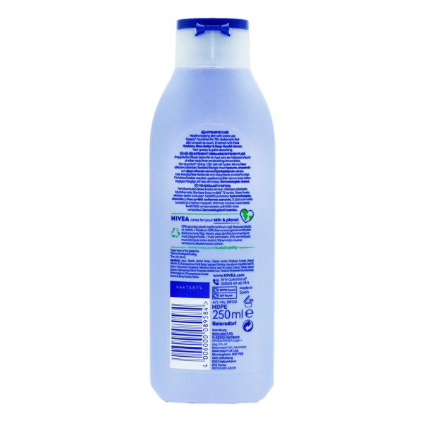 Enriched With A Combination Of Caring Ingredients, Including Nivea Deep Moisture Serum And Naturally Derived Shea Butter, This Body Lotion Protects The Skin And Delivers Deep Moisture. Some Areas Of Skin Dry Out Quicker Than Others. That’S Why It’S Important To Give It Extra Care All Year Round And Give Your Skin All That It Deserves. Be There For Your Skin With Nivea Irresistibly Smooth Body Lotion.