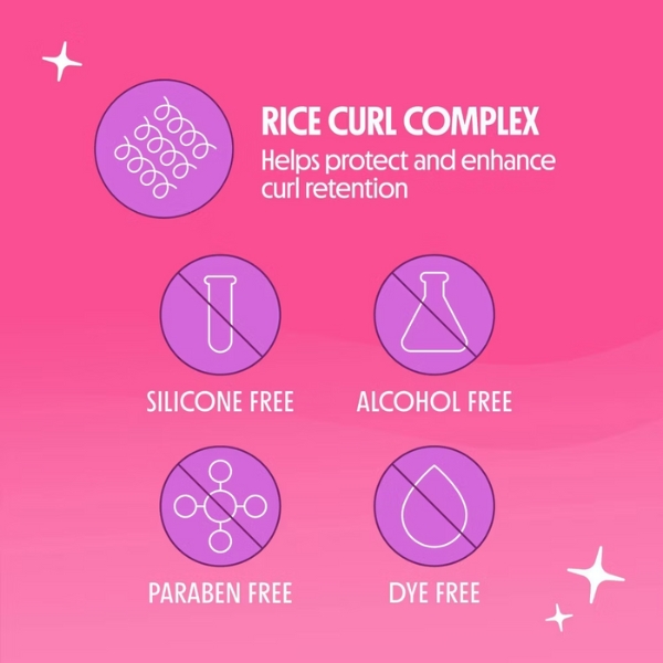 - Made with Rice Curl Complex–a protein-rich blend of rice, keratin amino acids, and enzymes–helps protect and enhance curl retention.
