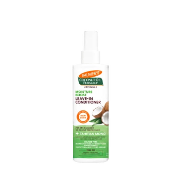 Palmer’s® Coconut Oil Formula Moisture Boost Leave-In Conditioner restores dry or damaged hair with naturally-derived ingredients that deeply lock in moisture from root to tip, visibly improving your hair’s condition after each use.