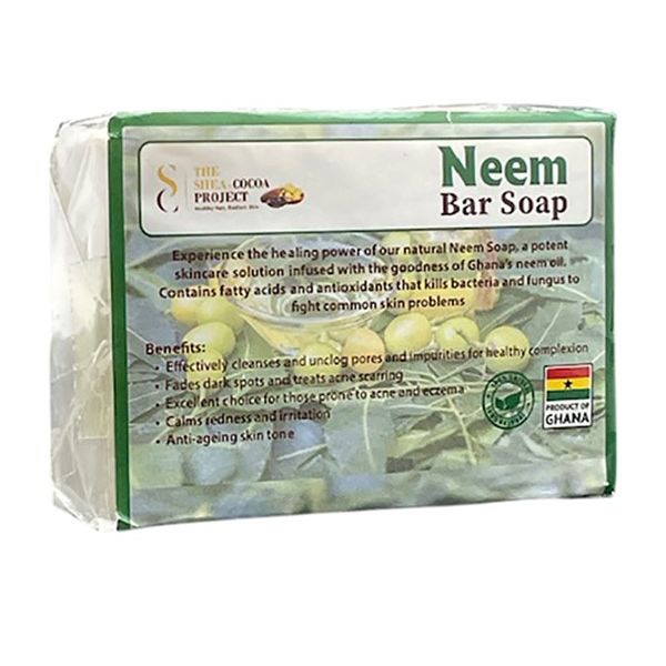 Experience the healing power of The Shea Cocoa Project Neem Bar Soap, a potent skincare solution infused with the goodness of ghana’s neem oil. Contains fatty acids and antioxidants that kills bacteria and fungus to and fight common skin problems .