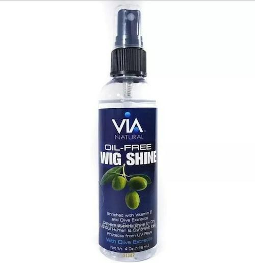 - Via Natural Oil Free Wig Shine is with olive extracts and is enriched with Vitamin E and olive extracts.
